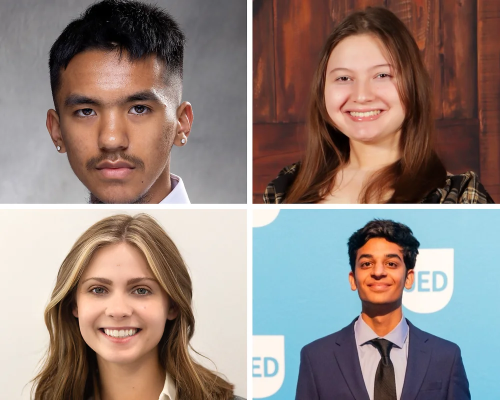 Photo at top, clockwise from top left: Juan Garcia, Jr., Ivanna Sintes-Klein, Rachel Davis, and Rohan Satija.